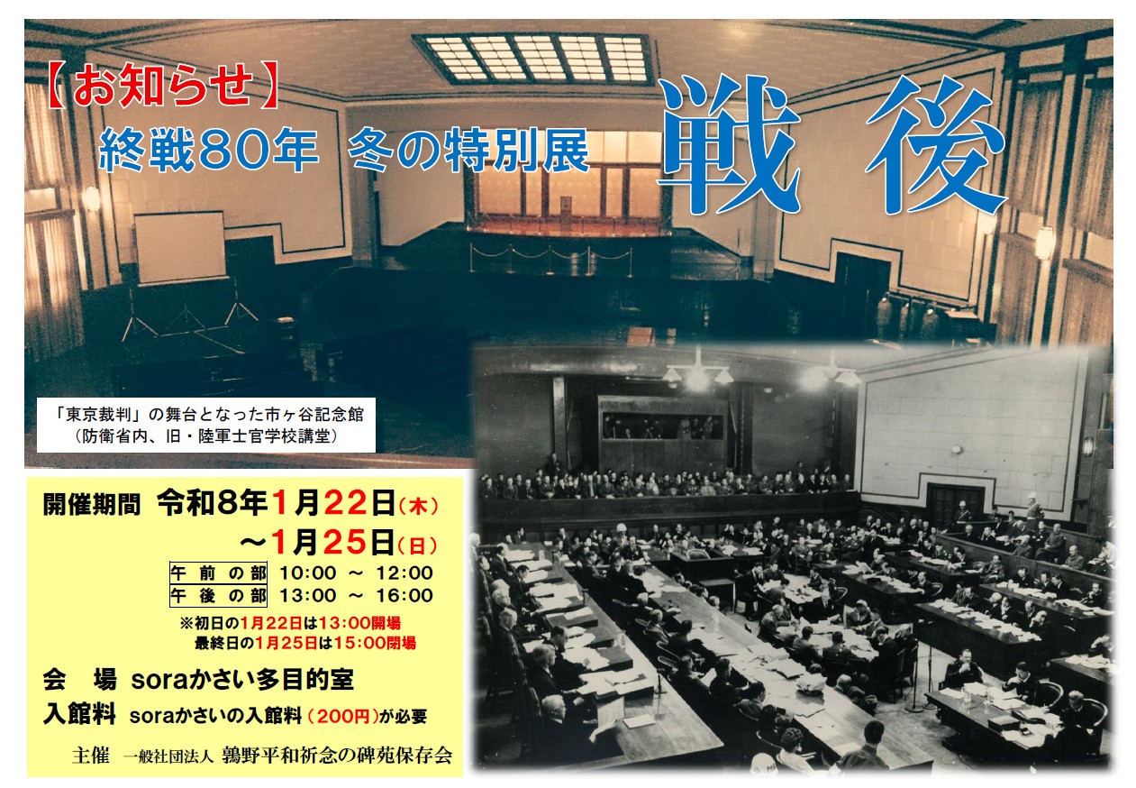 12月28日(日)、1月1日(祝)、1月4日(日)は、資料館を臨時休館とさせていただきますので、ご了承ください。
